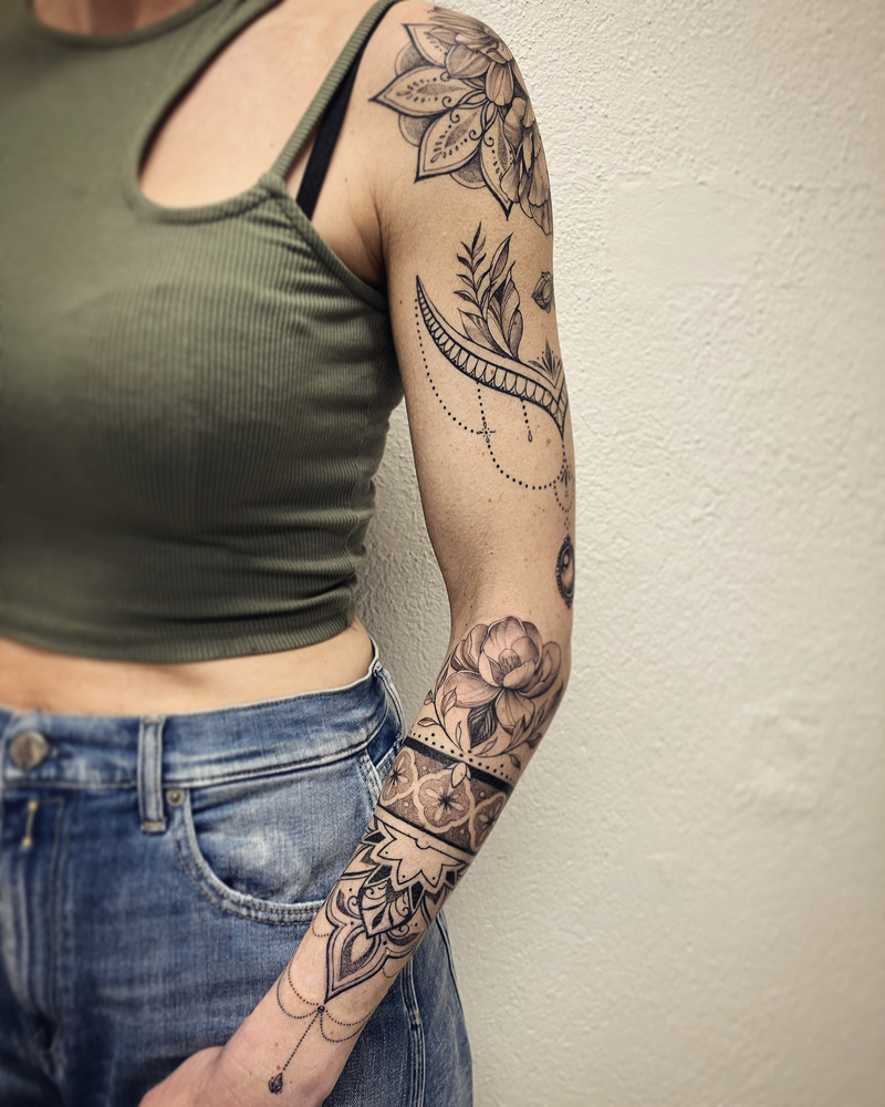 Tatouant depuis 2009, je travaille de manière polyvalente et explore volontiers vos thématiques dans des styles variés. Mes préférences se portent sur les mondes animalier, végétal, floral et ornemental. Je travaille aussi les portraits et plus largement les personnages, j'aime également les motifs ayant trait à l'univers amérindien ou chamanique.